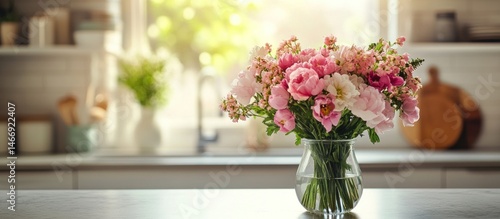 © Firmantio, Fototapeta premium Pretty Pink Bouquet in a Kitchen