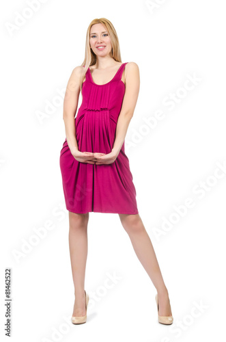 Naklejka premium Pretty pregnant woman in pink dress isolated on white