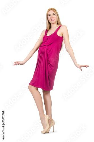 Naklejka premium Pretty pregnant woman in pink dress isolated on white