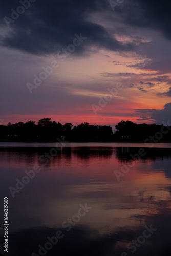 © whitney, Fototapeta premium pretty reflective sunset over the lake