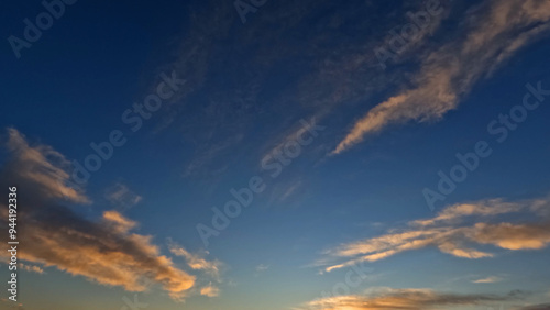 © Dancing Man, Fototapeta premium pretty sunset goldish clouds on the sky backdrop - photo of nature