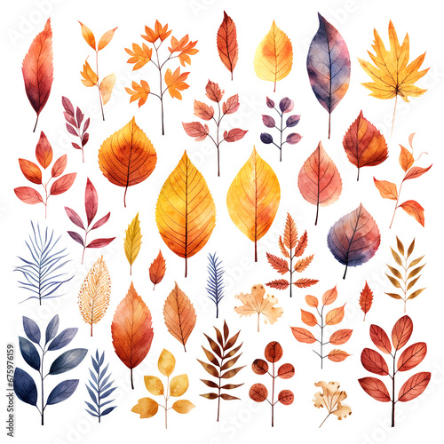 Fototapeta premium Pretty watercolour autumnal leaves. This is a png file with a transparent background.