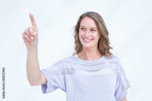© WavebreakmediaMicro, Fototapeta premium Pretty woman pointing with her finger