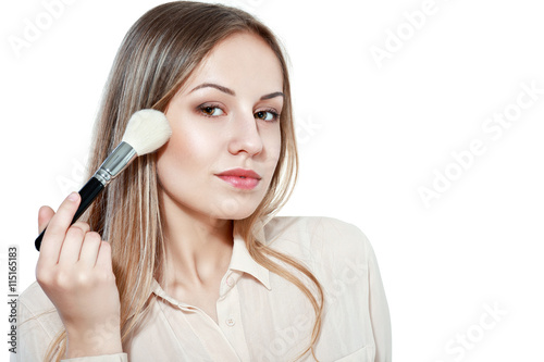 © zea_lenanet, Fototapeta premium pretty woman with makeup brush