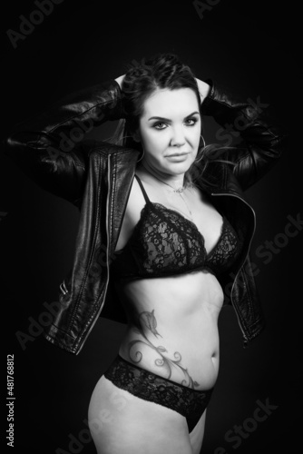 Fototapeta premium pretty young brunette woman posing in lingerie on a black background