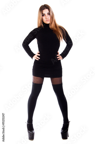 © art_zzz, Fototapeta premium Pretty young woman in a black dress
