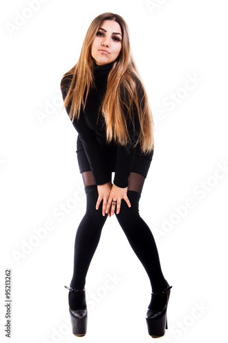 © art_zzz, Fototapeta premium Pretty young woman in a black dress
