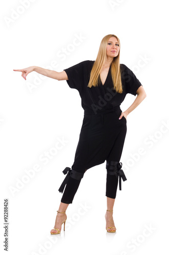 Fototapeta premium Pretty young woman in black clothing isolated on white