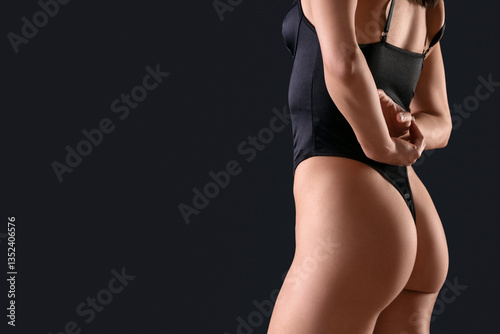 © Pixel-Shot, Fototapeta premium Pretty young woman in underwear on black background