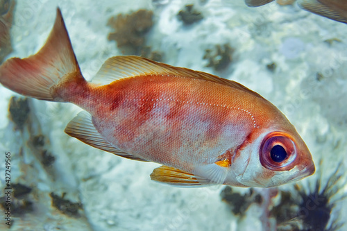 Obraz premium Priacanthus hamrur swims above the sea floor.