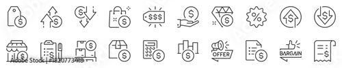 Naklejka premium Price concepts, thin line icon set. Symbol collection in transparent background. Editable vector stroke. 512x512 Pixel Perfect.
