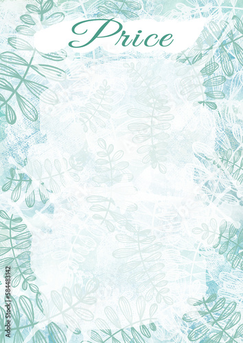 © Andrei, Obraz premium Price list template for business design. Watercolor abstract background with gradient green leave. Price list for printing