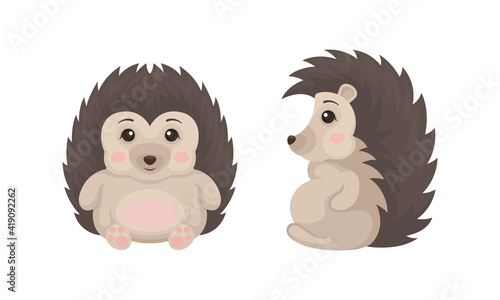 Fototapeta premium Prickly Hedgehog as Forest Animal in Different Poses Vector Set