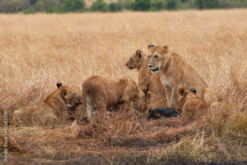 © Lennjo, Fototapeta premium Pride of lions at the Masaai Mara