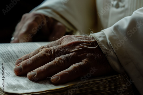 © Bora, Fototapeta premium priest who puts his hand on the bible and swears close up hand