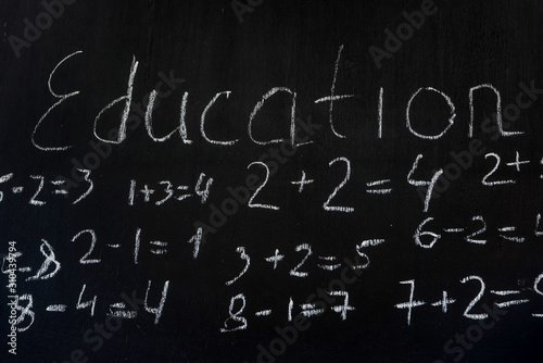 © RomanR, Obraz premium primary maths formulas written on the blackboard background