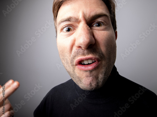 Obraz premium Primer plano con gran angular de hombre enfadado