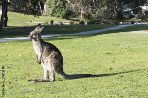 © DiegoCalvi, Fototapeta premium Primer plano de un canguro en un campo. Australia