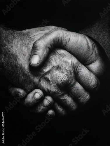 © Johannes, Fototapeta premium Primer plano estrechar mano cerrando trato de negocios en blanco y negro