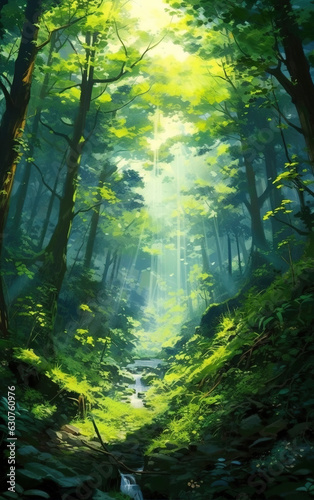 © henvryfo, Obraz premium Primitive forest background,created with generative ai tecnology.