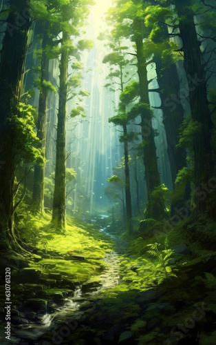 © henvryfo, Obraz premium Primitive forest background,created with generative ai tecnology.