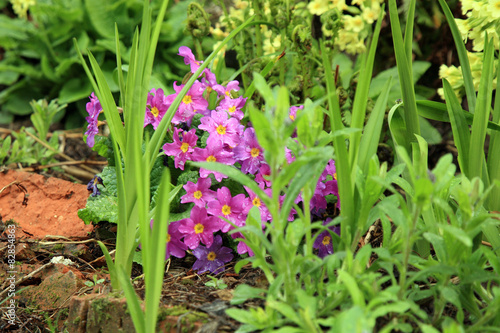 Fototapeta premium Primula cultivar, spring flower in the country wild garden