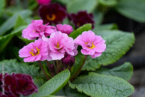 Fototapeta premium Primula perennial pink blooming closeup.