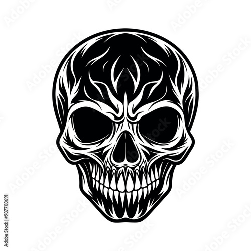 © Hamida, Fototapeta premium Print black and white skull silhouette