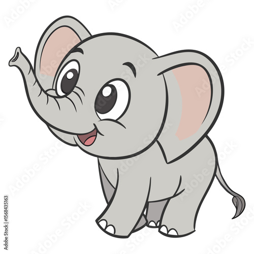 © Aisha, Fototapeta premium Print Cute Cartoon Baby Elephant with a Happy Smile and Big Eyes Illustration