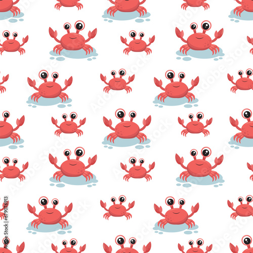 © Mariana, Fototapeta premium Print with cute crabs for children's clothing. Seamless pattern with crabs on a white background. Vector illustration