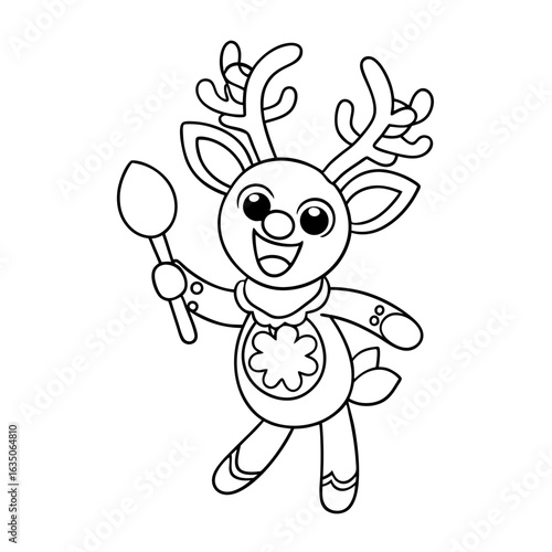 © art design, Naklejka premium printable cheerful reindeer catching snowflakes outline