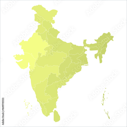 Obraz premium Printable India Map, India map showing all state borders for commercial and academic use. Indian map state coloured