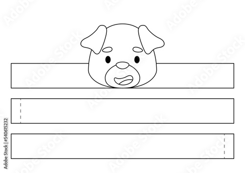 Fototapeta premium Printable pug dog paper crown. Diy cut party ribbon template for birthday, Christmas, baby shower. Fun accessory for entertainment. Print, color, cut and glue. Vector stock illustration