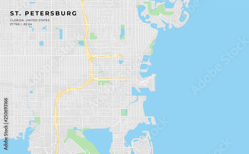 Fototapeta premium Printable street map of St. Petersburg, Florida