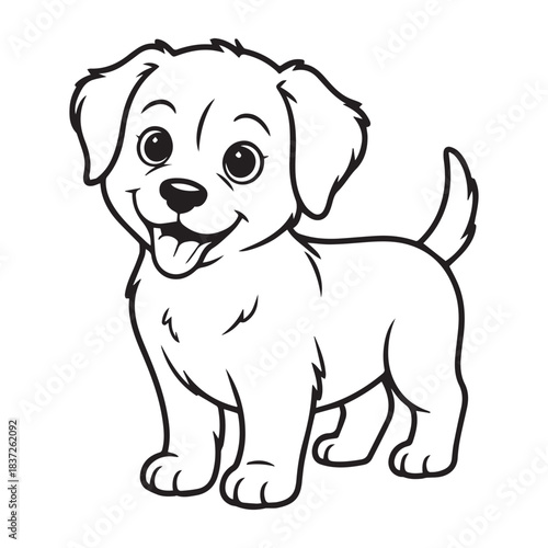 Fototapeta premium PrintCute Happy Puppy Dog Outline Vector Illustration