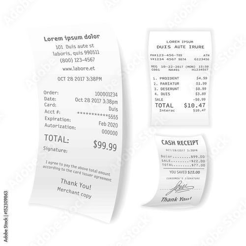 © Sonulkaster, Naklejka premium Printed cash receipts vector set isolated on white
