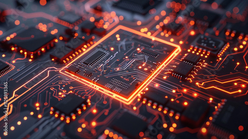 © abiha, Obraz premium printed circuit board with processor