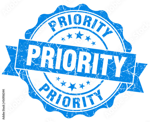 © Aquir, Fototapeta premium Priority Grunge damaged blue isolated Stamp