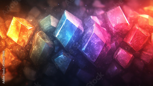 © YoursTrulyPhotos, Obraz premium Prism light reflections on black background, featuring blurred geometric shapes, soft gradients, and ethereal colorful overlay, creating a glowing and modern visual effect of sunlight refraction.