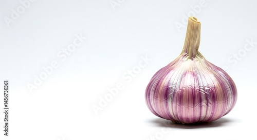 © Kanthowork, Obraz premium prismatic garlic, isolated right, white, copy space left. ,isolated on bright background, no text