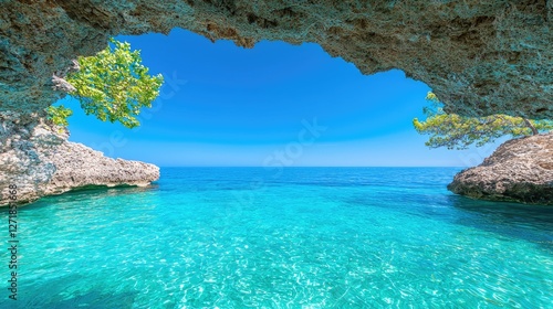 © danadesa, Fototapeta premium Pristine Azure Cave Beach Water