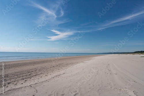 Fototapeta premium Pristine Empty Sand Beach with Clear Blue Sky in Summer