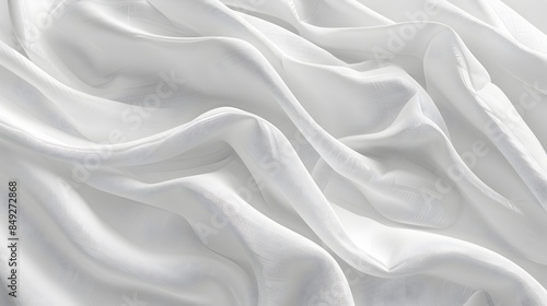 Obraz premium Pristine Linen Fabric Texture with Soft Folds and Weave on White Background