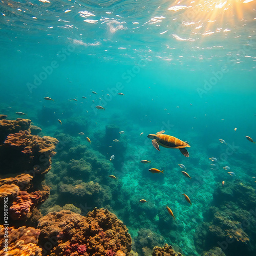 Fototapeta premium Pristine Plastic-Free Ocean with Vibrant Marine Life and Coral Reefs