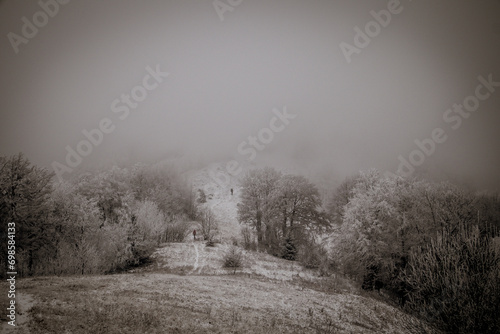 © fluidni, Obraz premium Pristine snow blankets rugged terrain.
