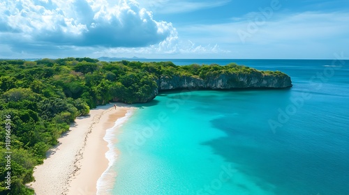 Fototapeta premium Pristine Tropical Beach with Turquoise Waters and Lush Green Cliffs :...