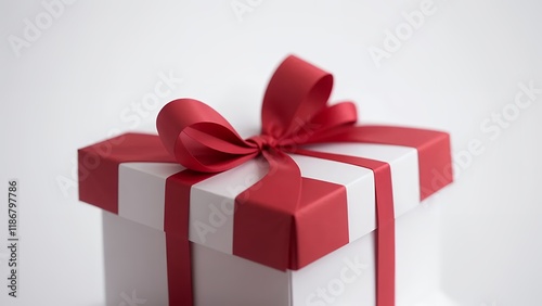 © Handz Boy, Obraz premium Pristine White Background Single Red Gift Bow Sharp Folds Glossy Texture Minimal Shadows High Resolution Clean Professional Composition Microstock Ready