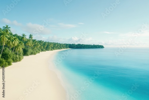 © Andrii , Obraz premium Pristine White Sand Beach with Palm Trees Overlooking Ocean