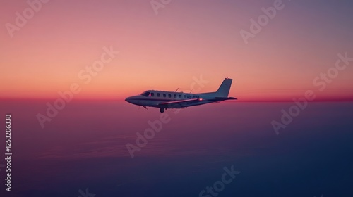 © Biancaart, Fototapeta premium Private Airplane Soaring Above Sunset Cloudscape