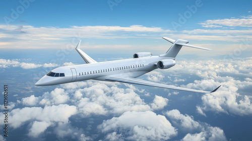 © Maciej Koba, Obraz premium Private Jet Flying Above Clouds, Luxury Air Travel Concept